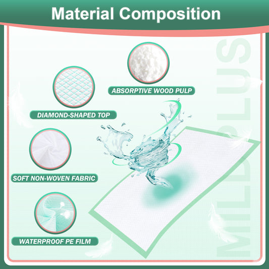 17"×24"(100-300 pcs)MILDPLUS Disposable Underpads Light Absorbent Bed Pads Small Chucks Pads for Kids, Puppy, Cat and Tioilet